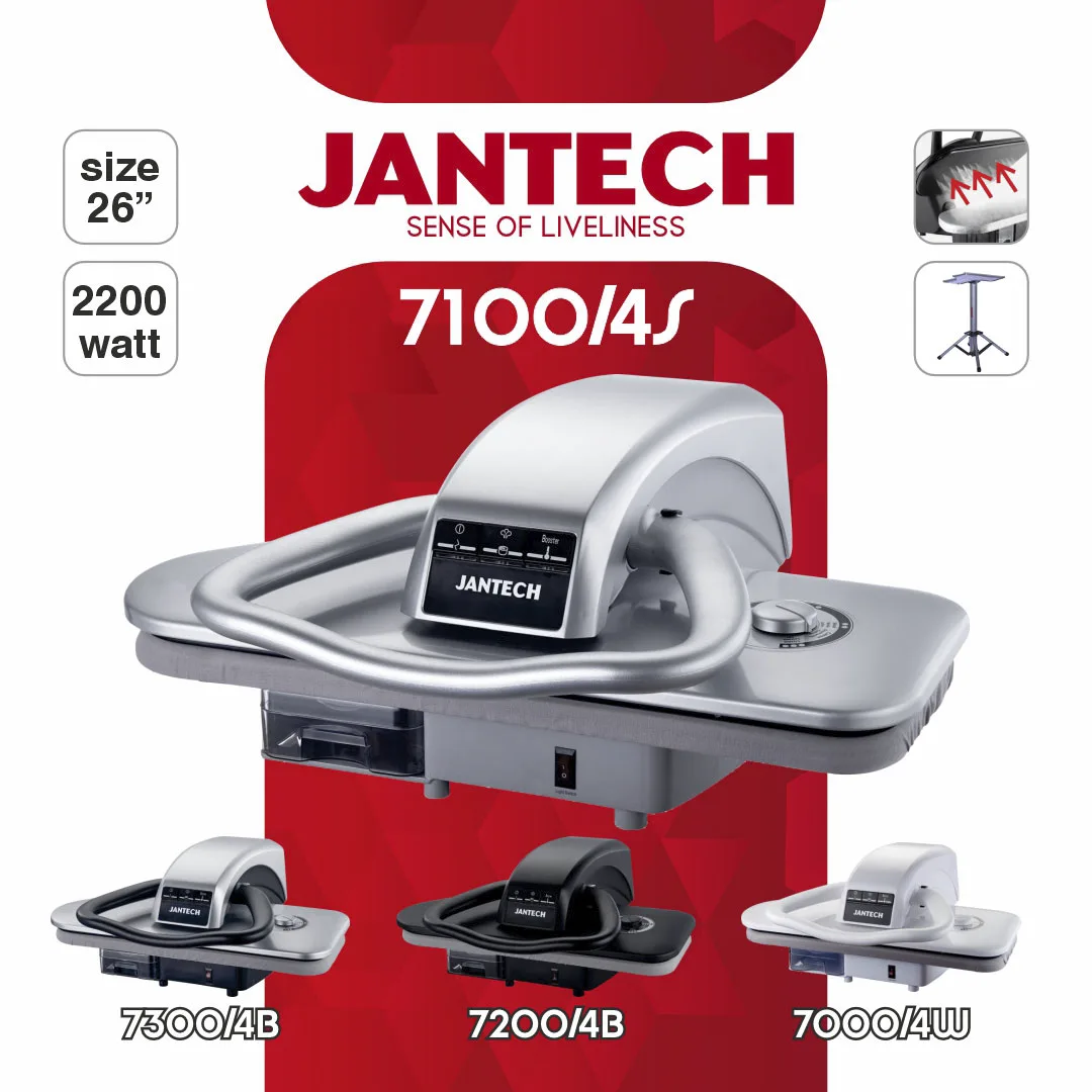 اتو پرس جانتک مدل 7000،7100،7200،7300 دارای مشخصات فنی یکسانی میباشند و تفاوت آنها در رنگ دستگاه میباشد.